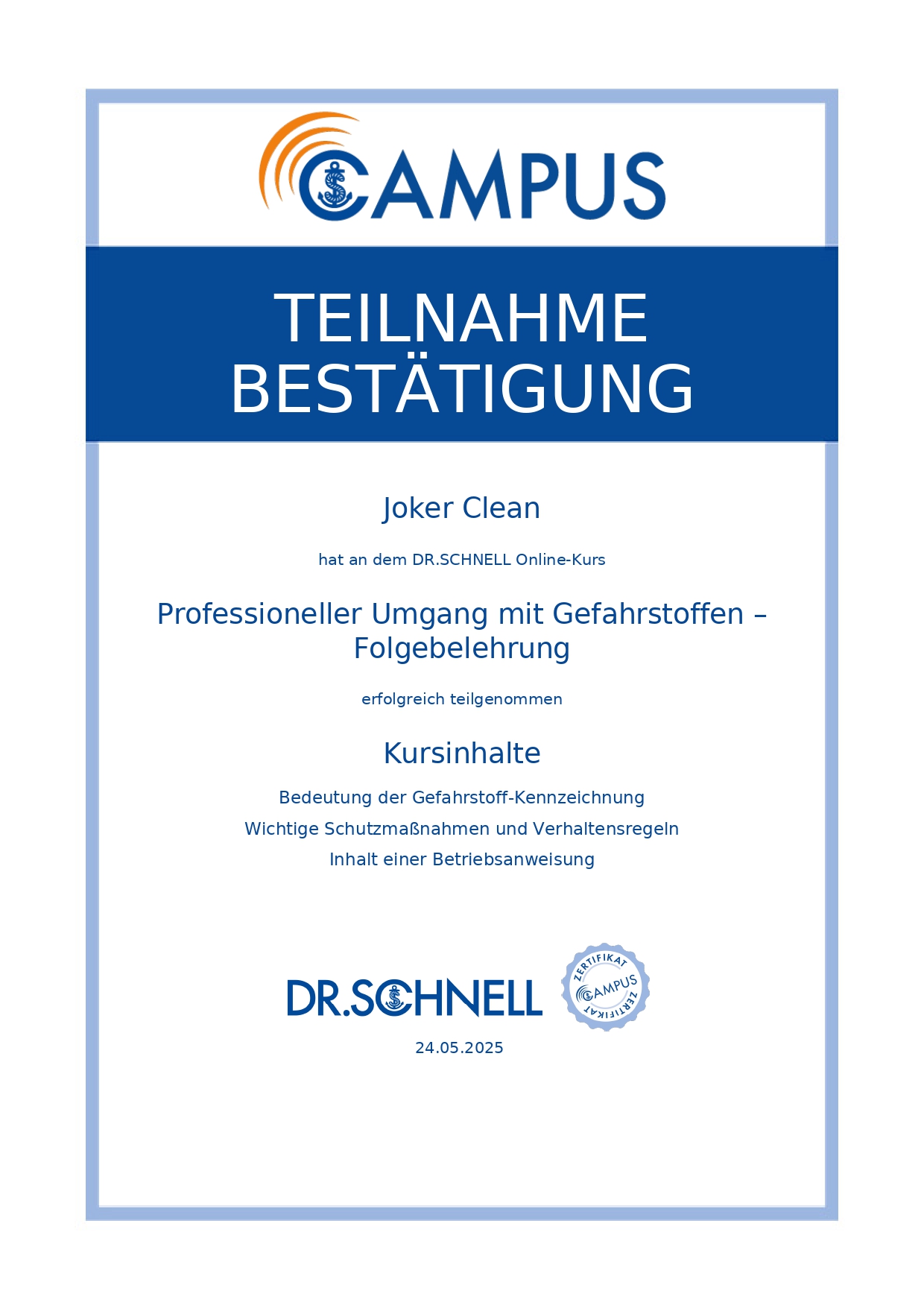 JOKER-Clean wurde 2022 als Familienunternehmen mit einem klaren Anspruch gegründet: Reinigungsdienstleistungen auf einem neuen, verlässlichen Niveau anzubieten. Die Wurzeln liegen in der langjährigen Erfahrung unseres Teams – viele von uns waren zuvor für andere Gebäudedienstleister tätig und wissen, worauf es in der Praxis wirklich ankommt.